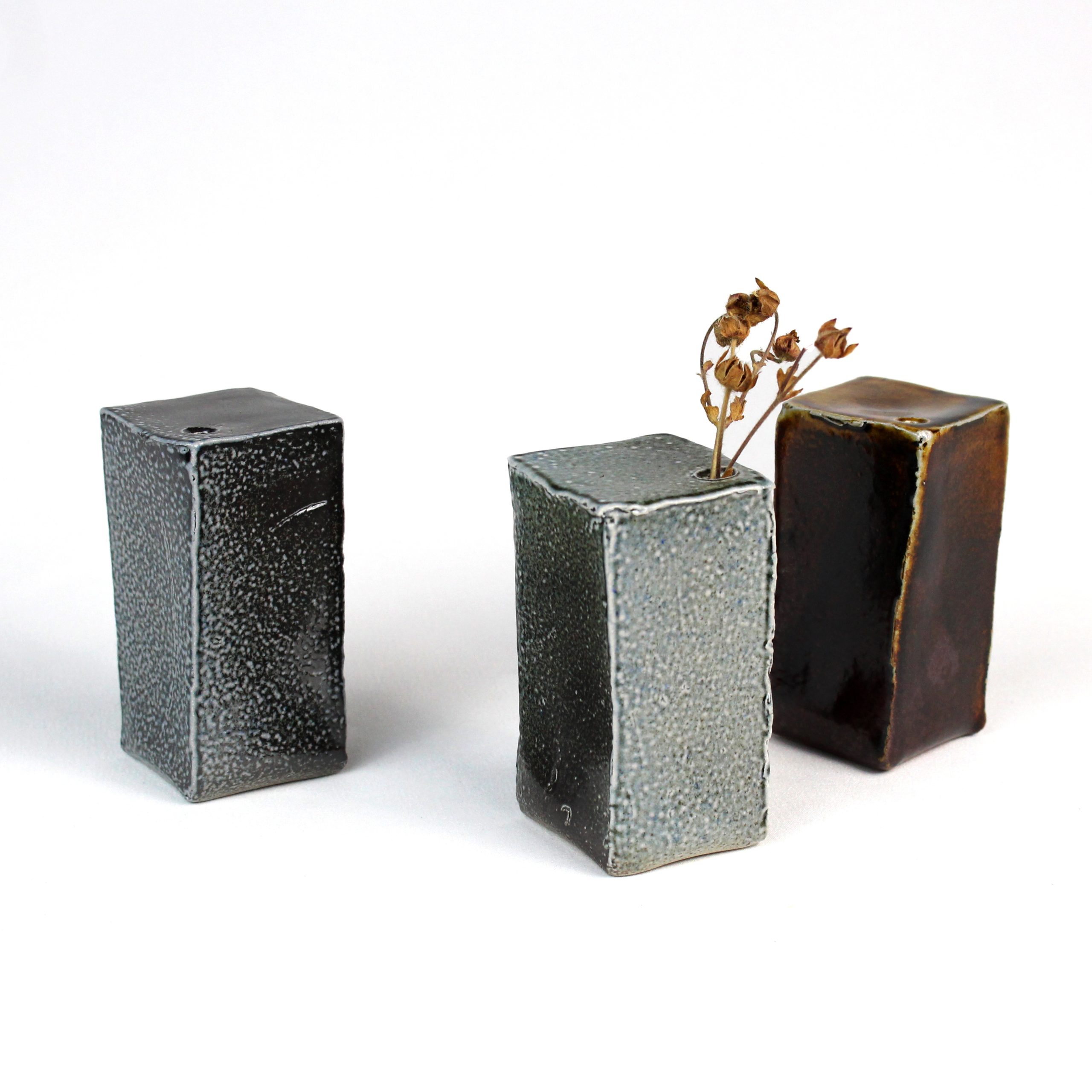 Tiny Single Stem Vase (salt-fired tenmoku glaze) by Francis Lloyd-Jones